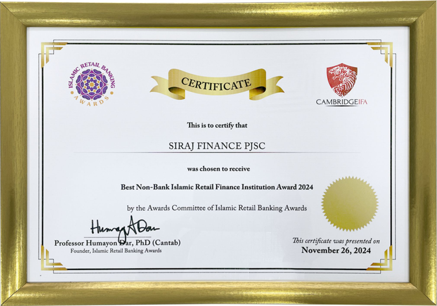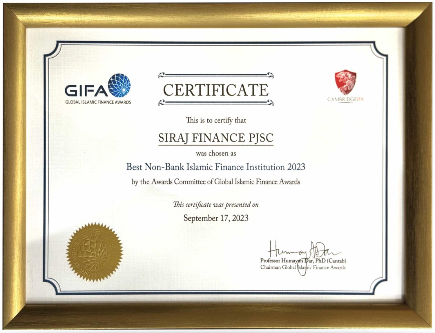 Best Non-Bank Islamic Retail Finance Institution Award